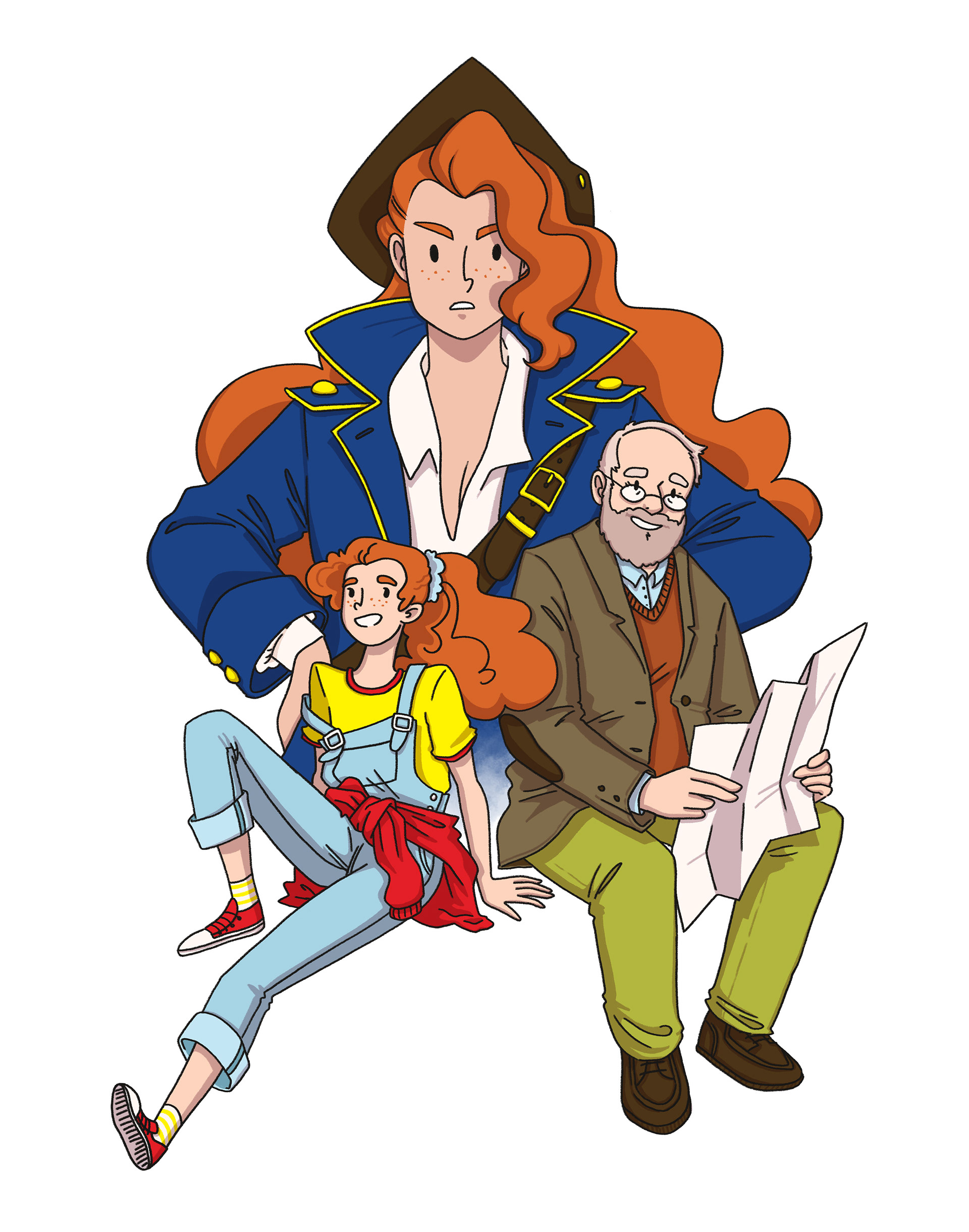 My first pass on character designs for a rejected sample - a children's book about the pirate Anne Bonny, and her modern-day descendants in pursuit of her buried treasure.
