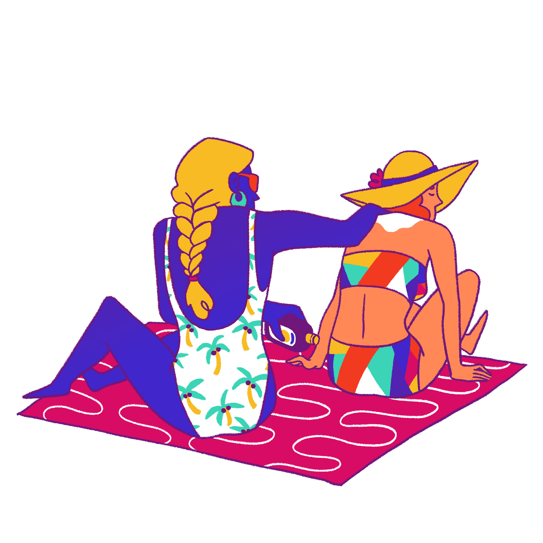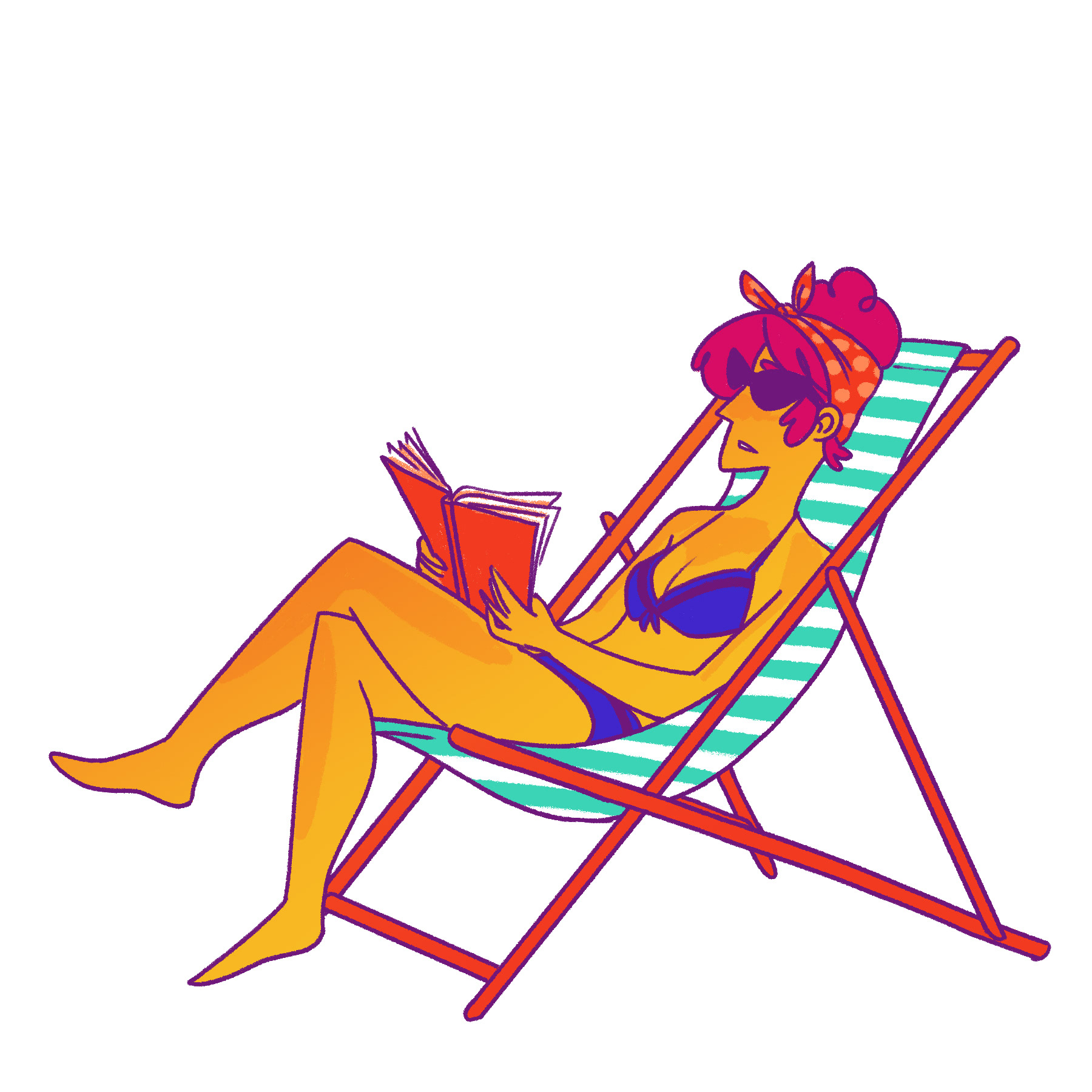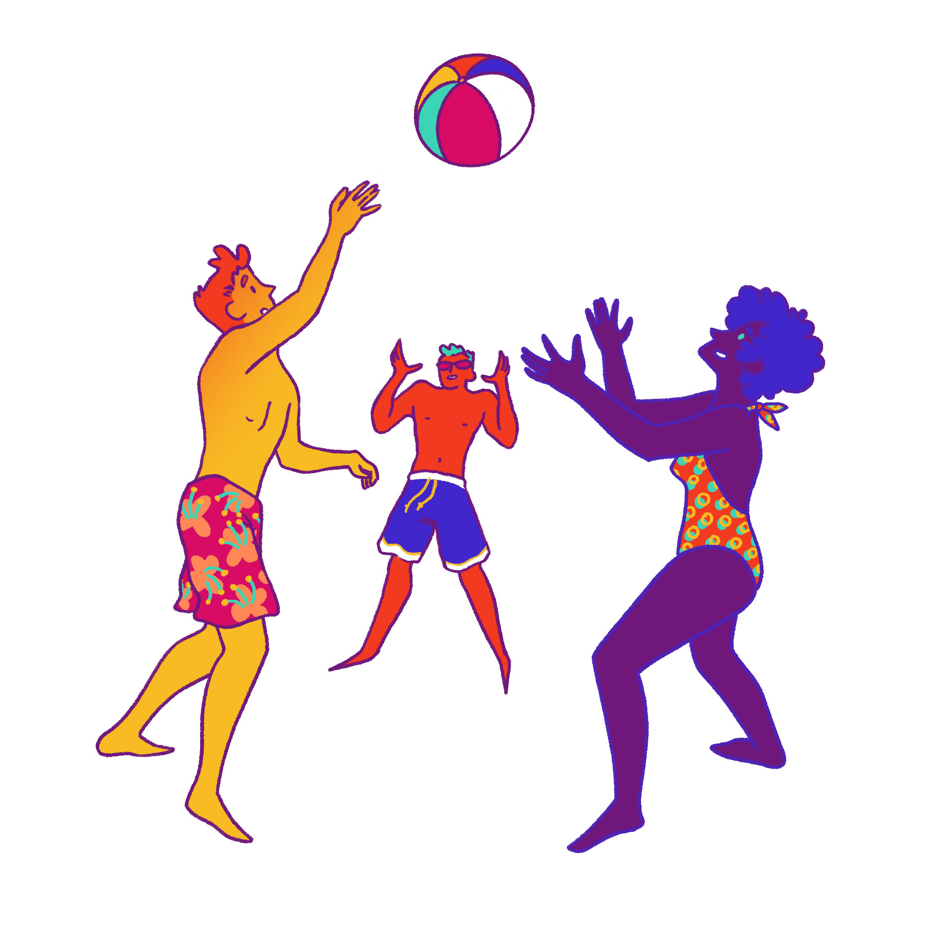 Self-initiated project. Bit of aspirational fantasy, since going to the beach isn't an option in the summer of 2020! Playing with fun poses and character designs, along with a bold, summery colour palette.