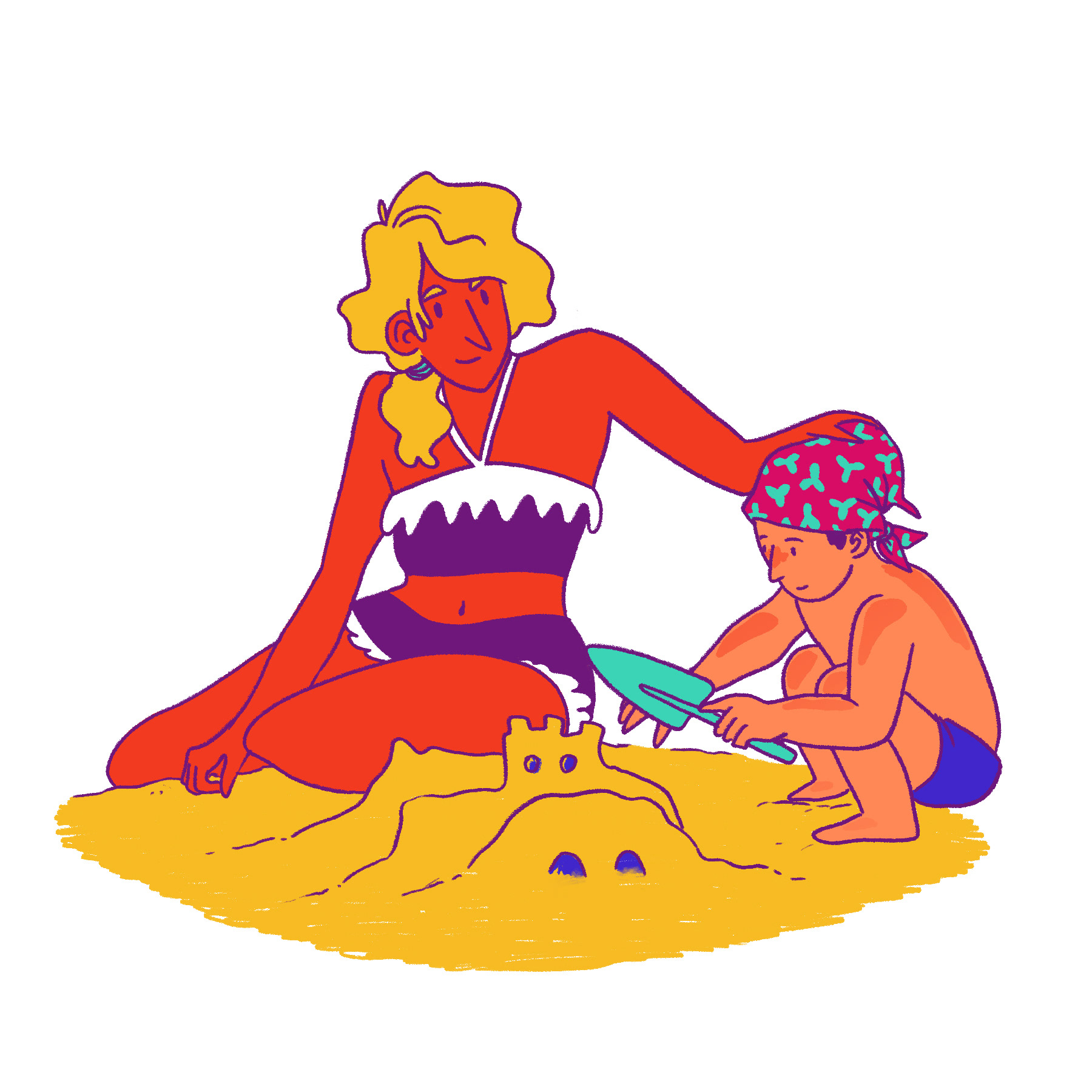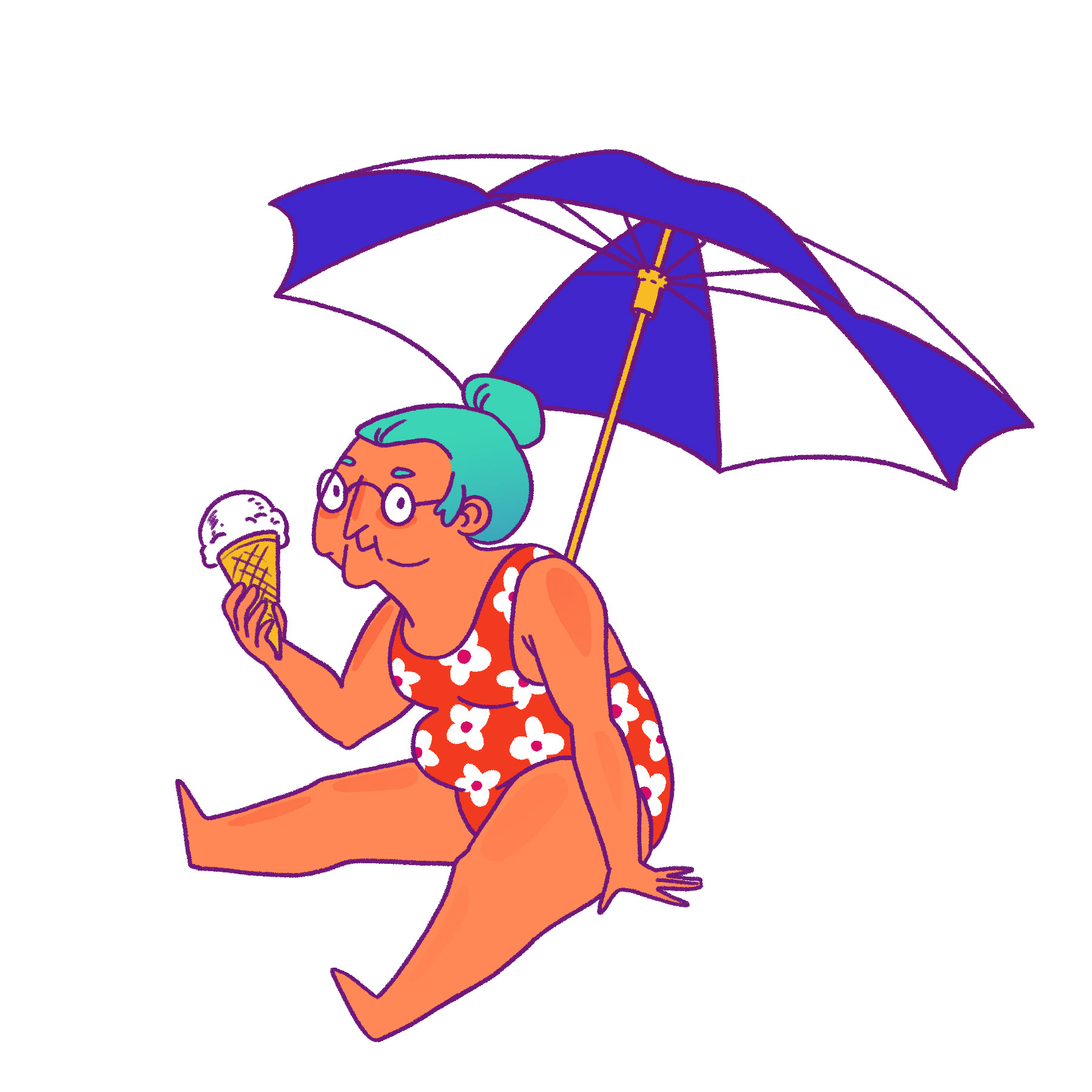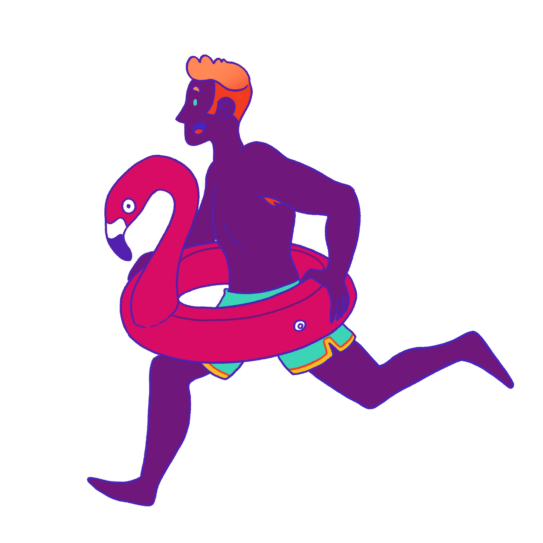 Self-initiated project. Bit of aspirational fantasy, since going to the beach isn't an option in the summer of 2020! Playing with fun poses and character designs, along with a bold, summery colour palette.