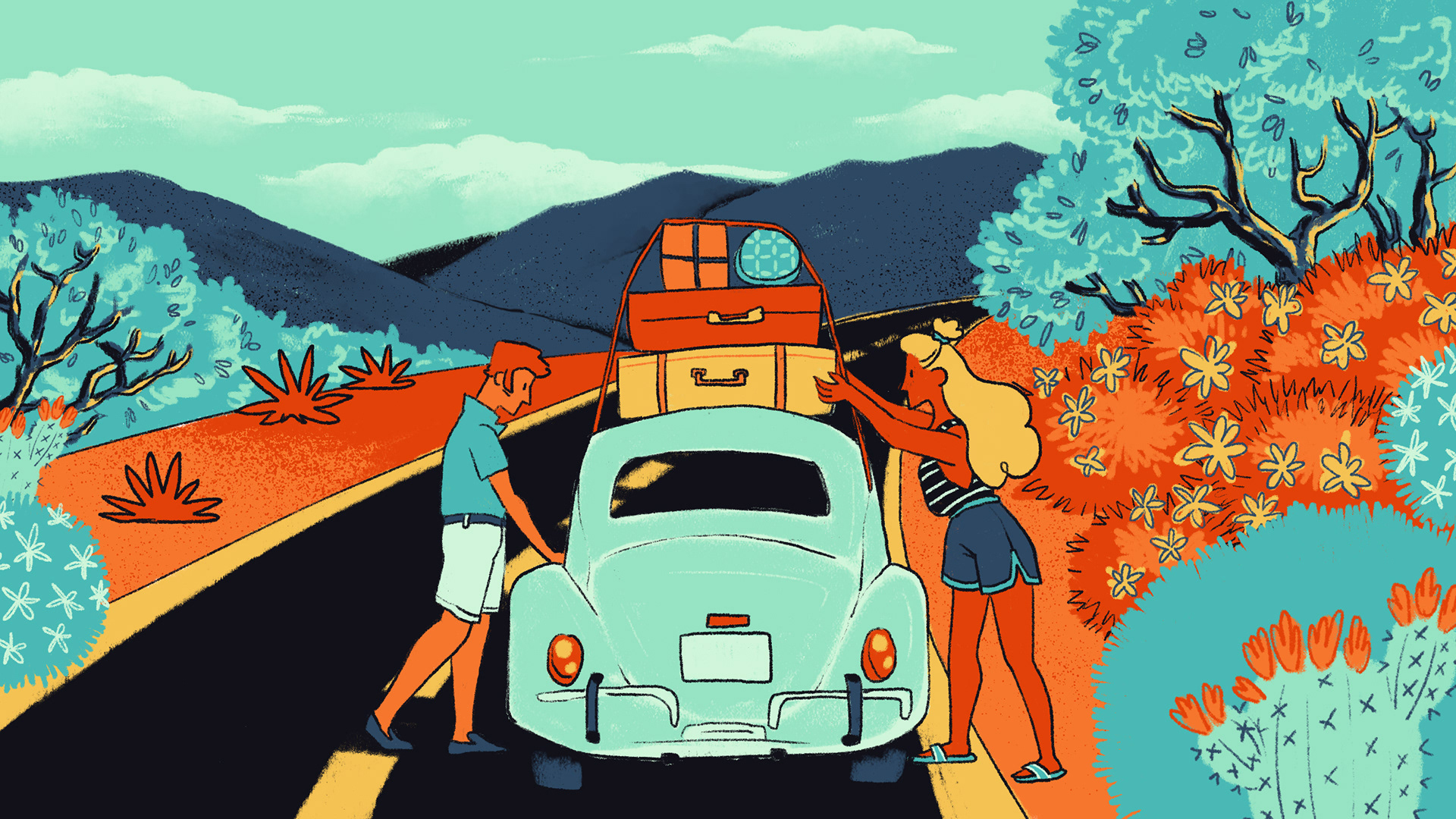 Header and spot images I created for Culture Trip. Three ways of taking a side trip to Puerto Escondido from Oaxaca: by plane, by car or by bus.